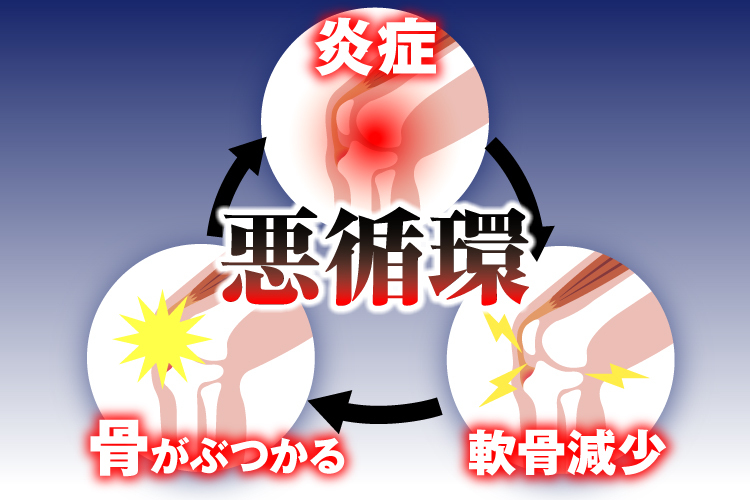 これらによってクッションである膝の軟骨が減り